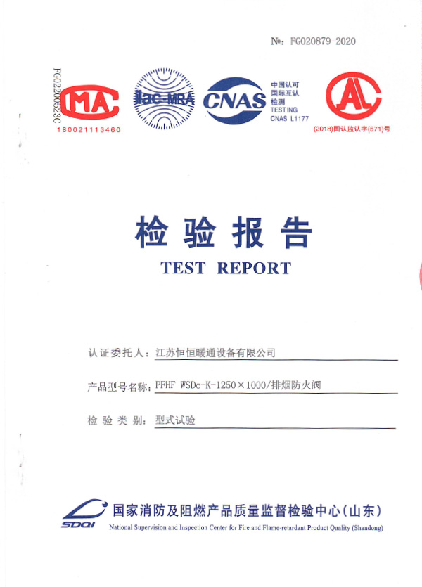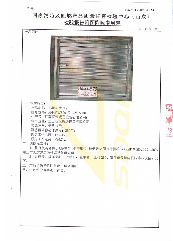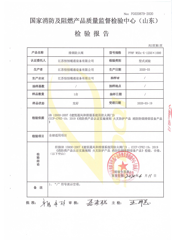 排煙防火閥認證證書1250X1000